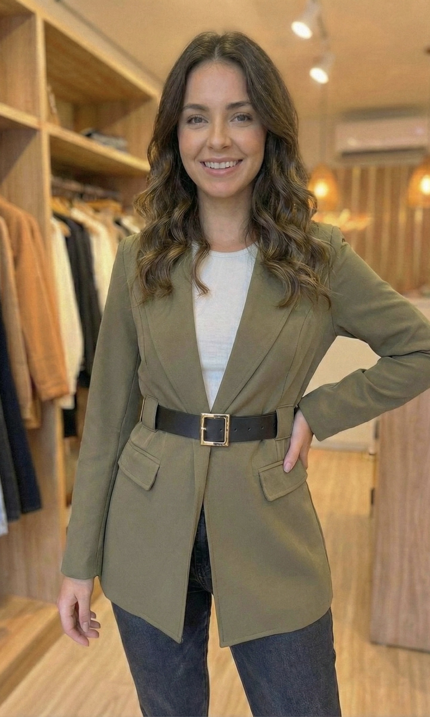 L’indispensable absolu. Ce blazer noir est la base de toute garde-robe réussie. Sa coupe structurée avec épaulettes et col tailleur assure une carrure élégante en toutes circonstances. Portez-le de façon classique (ouvert) pour le travail, ou transformez-le en pièce « créateur » en le ceinturant à la taille avec une belle boucle dorée pour féminiser la silhouette.