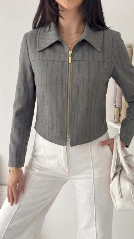 Veste Zippée à Fines Rayures
