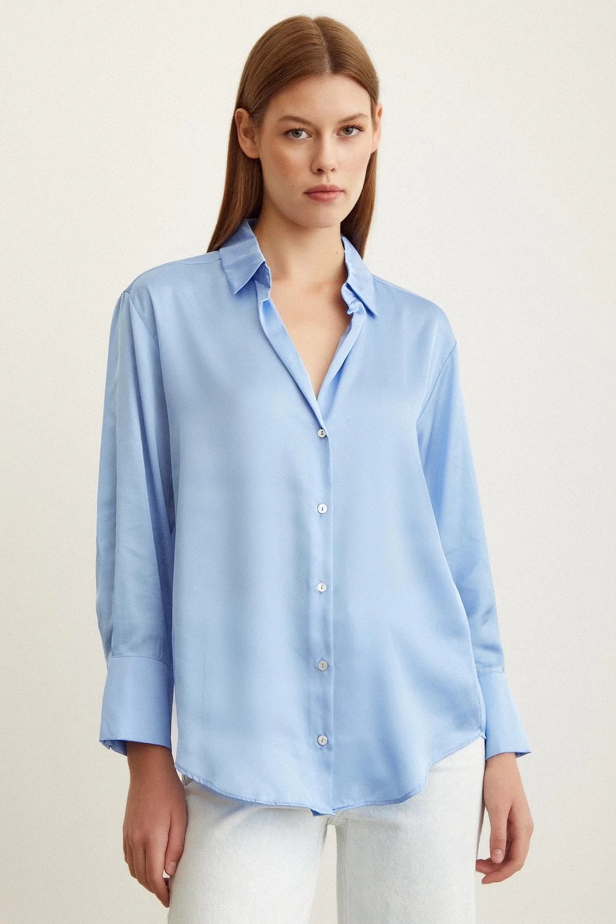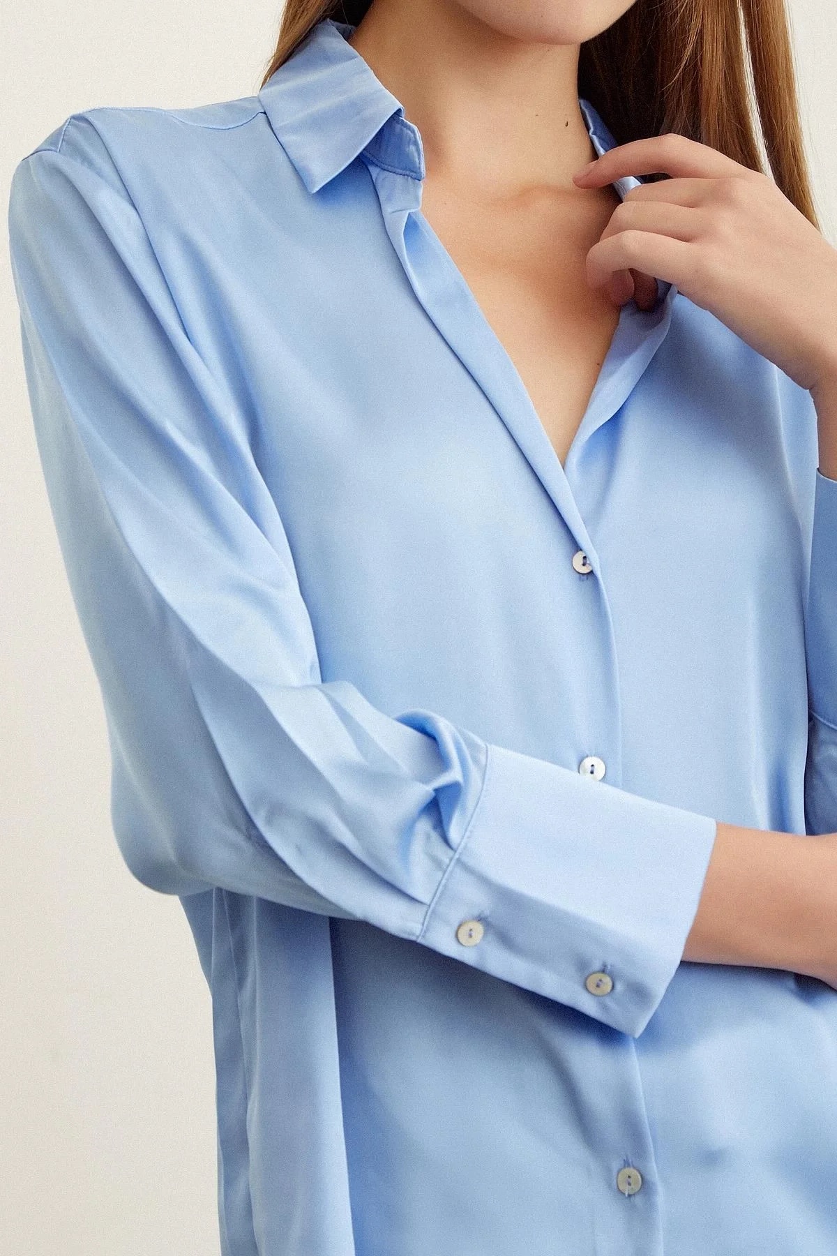 Chemise Fluide Satinée – Bleu Ciel
