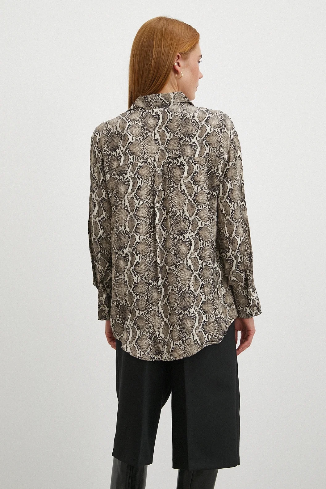 Notre nouvelle chemise à imprimé python est la pièce forte qui manquait à votre dressing. Avec ses tons neutres et son motif sophistiqué, elle transforme une tenue classique en un look ultra-pointu.