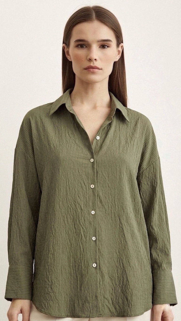 Chemise Oversize en Gaufre de Coton – Vert Olive
