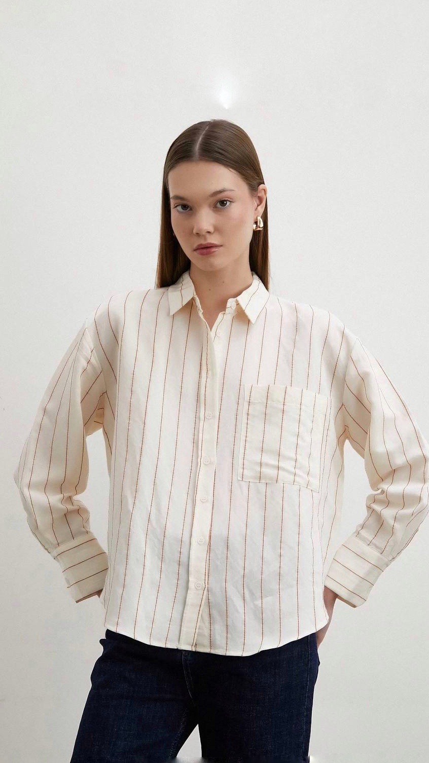Ses rayures verticales délicates allongent la silhouette, tandis que sa poche poitrine unique et ses poignets structurés ajoutent une note moderne et travaillée. C’est la pièce parfaite pour un look « Old Money » discret et raffiné.