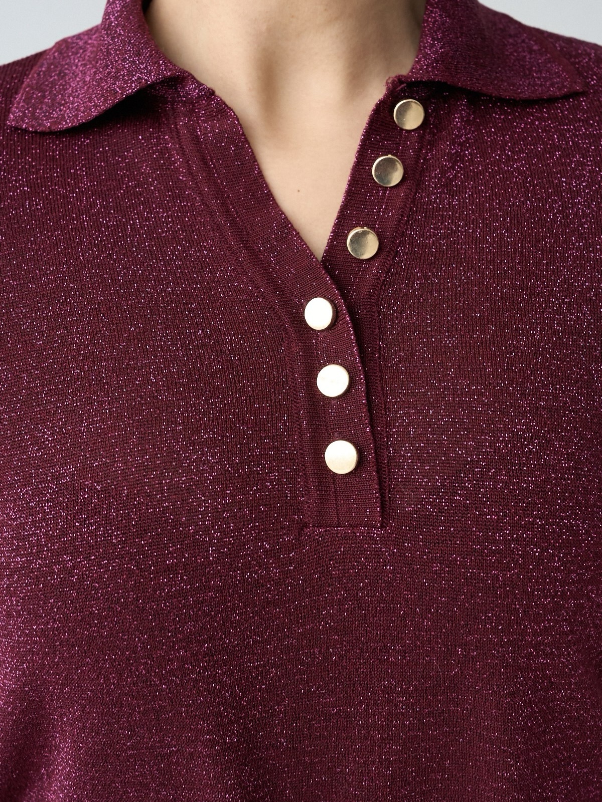 Polo Maille Lurex – Éclat Bordeaux & Boutons Dorés