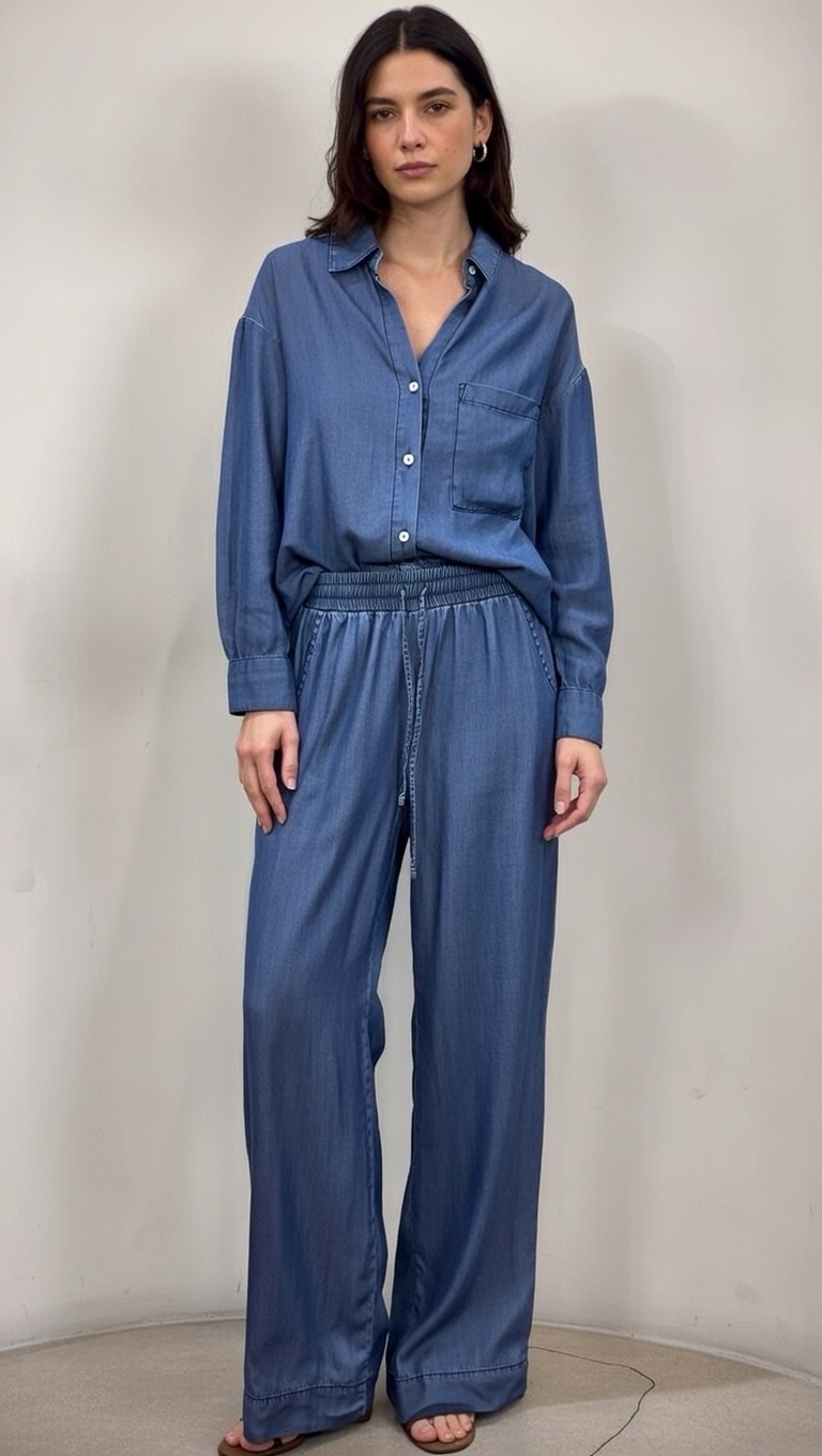 Ensemble Denim Fluide « Casual Chic » – Chemise & Pantalon Large