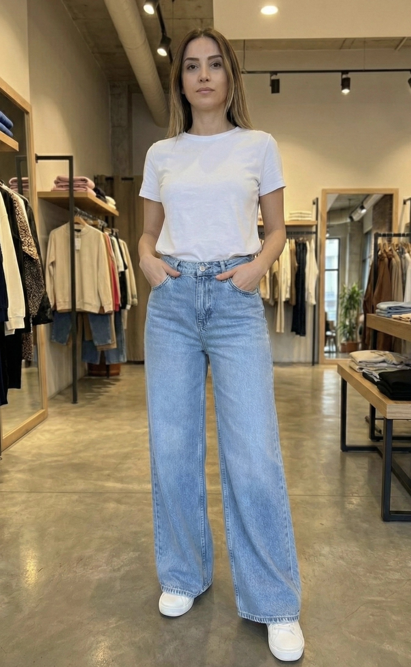 Ce jean à la coupe droite structurée allonge la silhouette tout en offrant un maintien parfait grâce à sa taille haute. Sa teinte indigo profonde et ses surpiqûres contrastantes en font une pièce chic