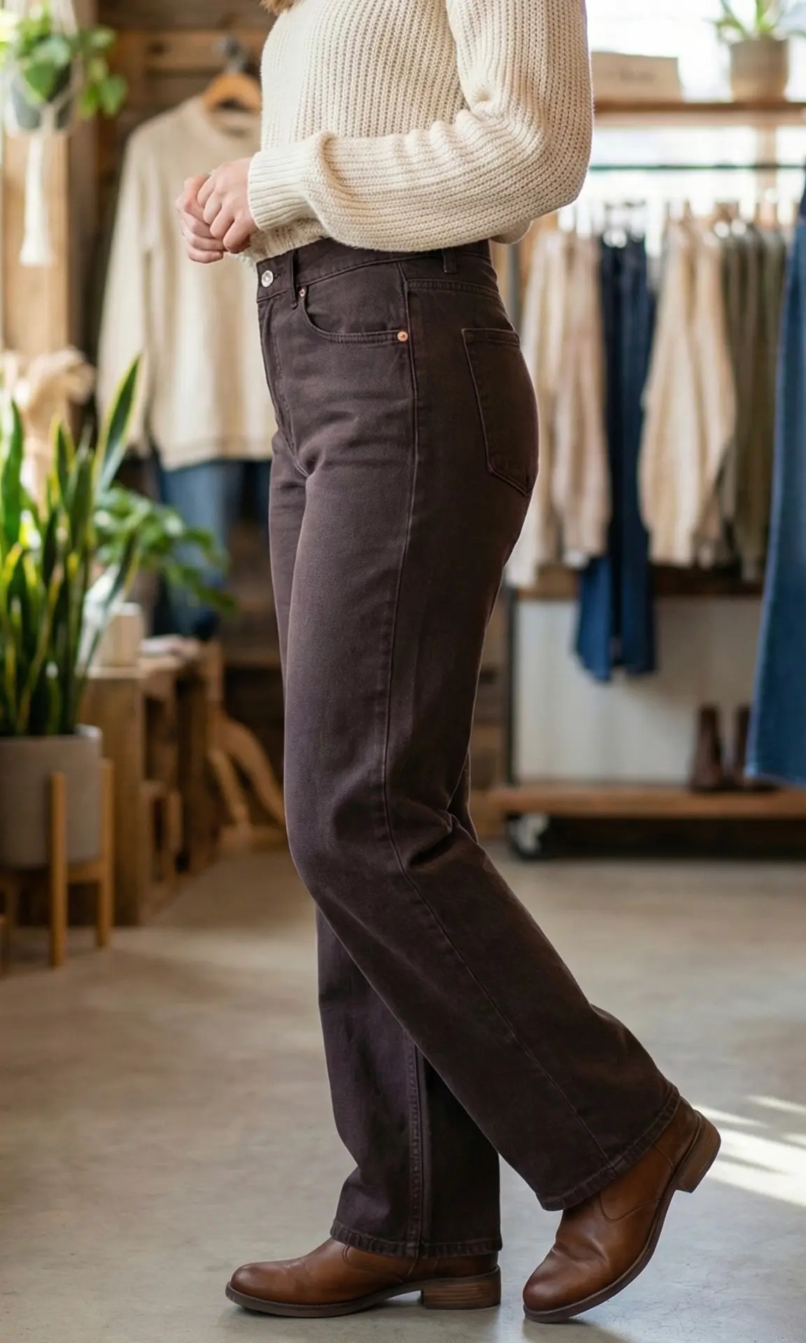 La tendance chaude de la saison. Osez quitter le bleu traditionnel pour ce magnifique jean en denim marron chocolat. Sa coupe droite (Straight) et sa taille haute allongent la jambe tout en offrant un confort absolu. C’est la pièce idéale pour composer des looks aux tons naturels et chaleureux. Sublime porté avec des bottines en cuir et une maille écru