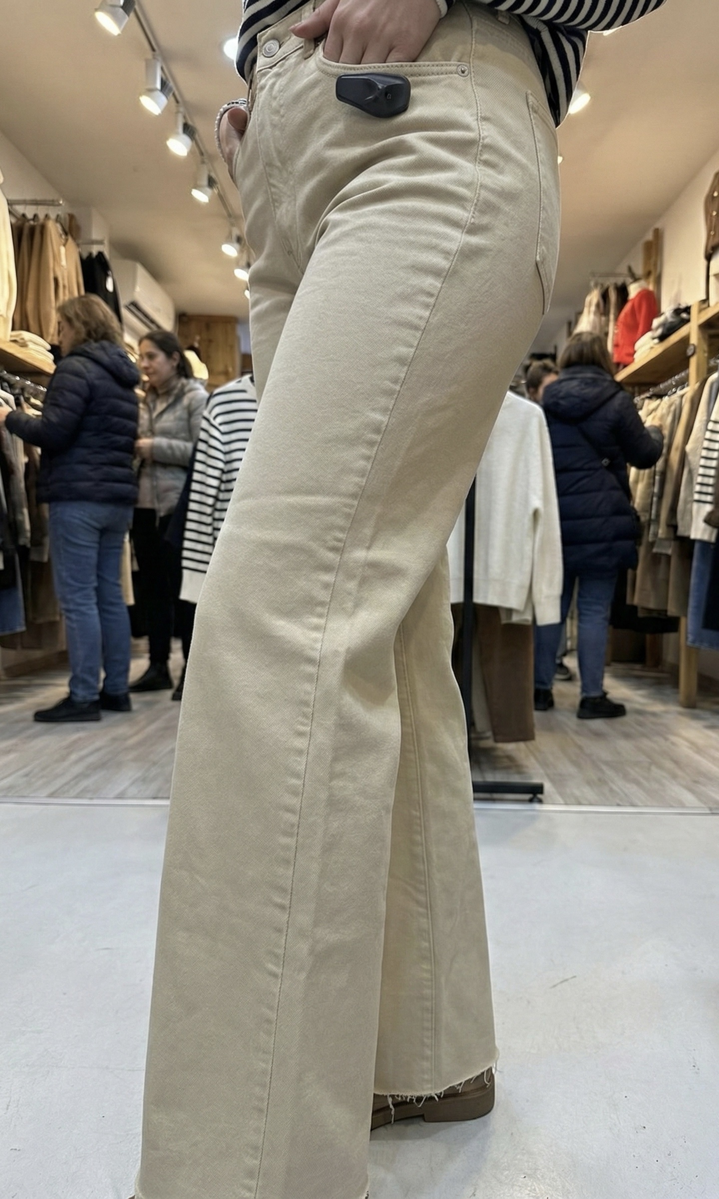 • Coupe : Taille haute et droite, structurée mais confortable.