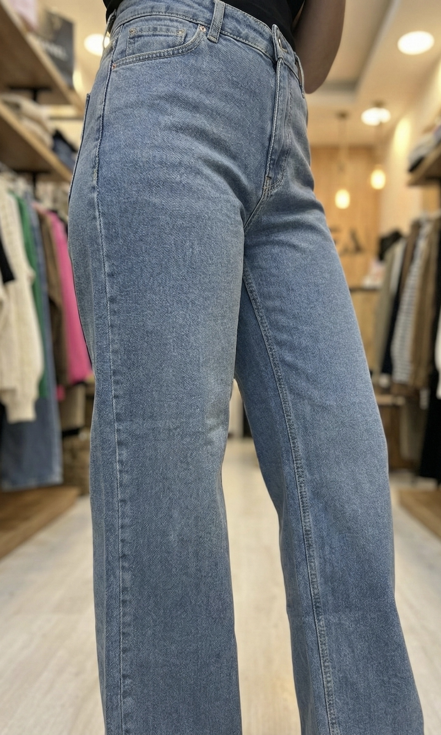 Jean Coupe Mom Taille Haute - Bleu Stone Médium