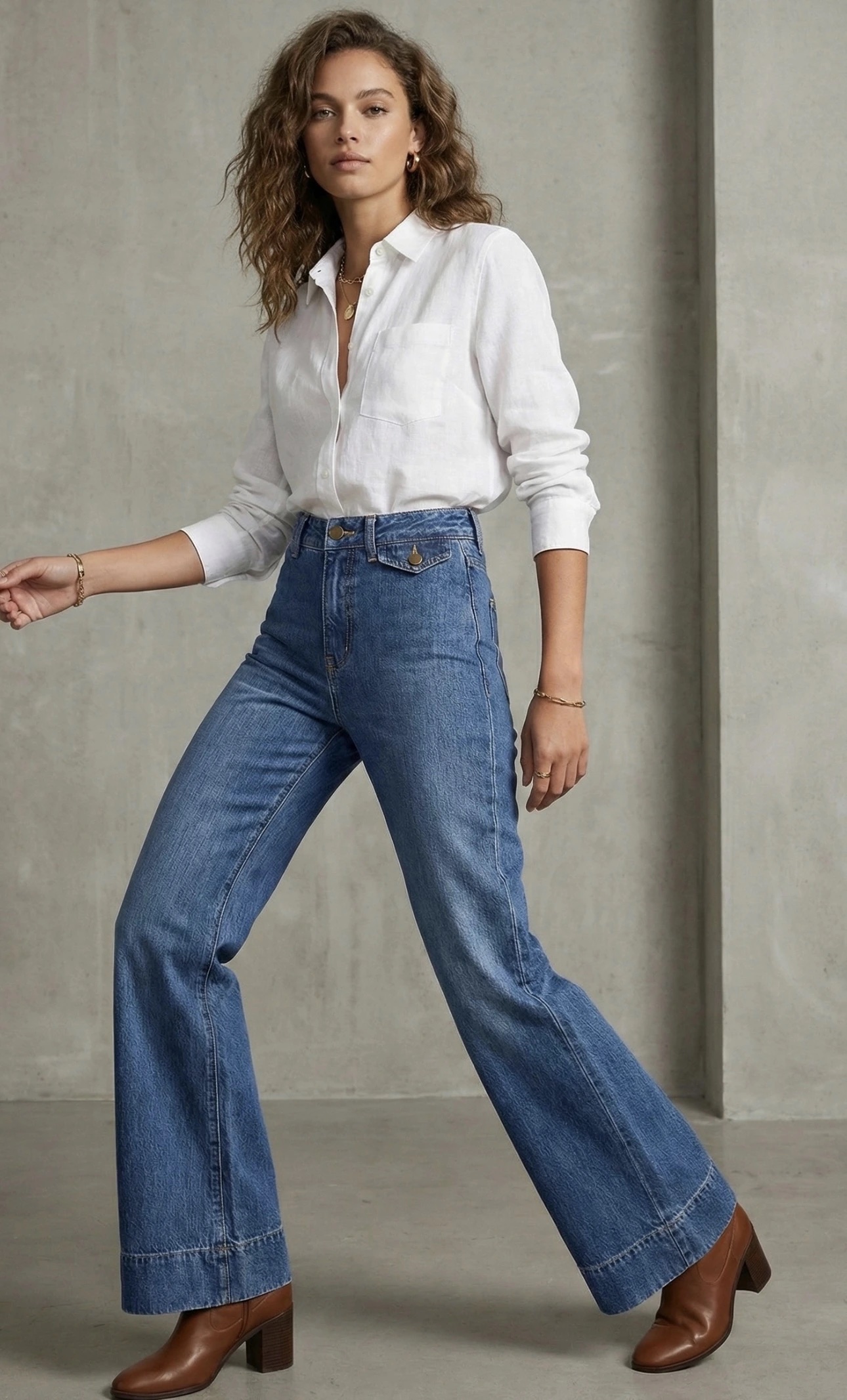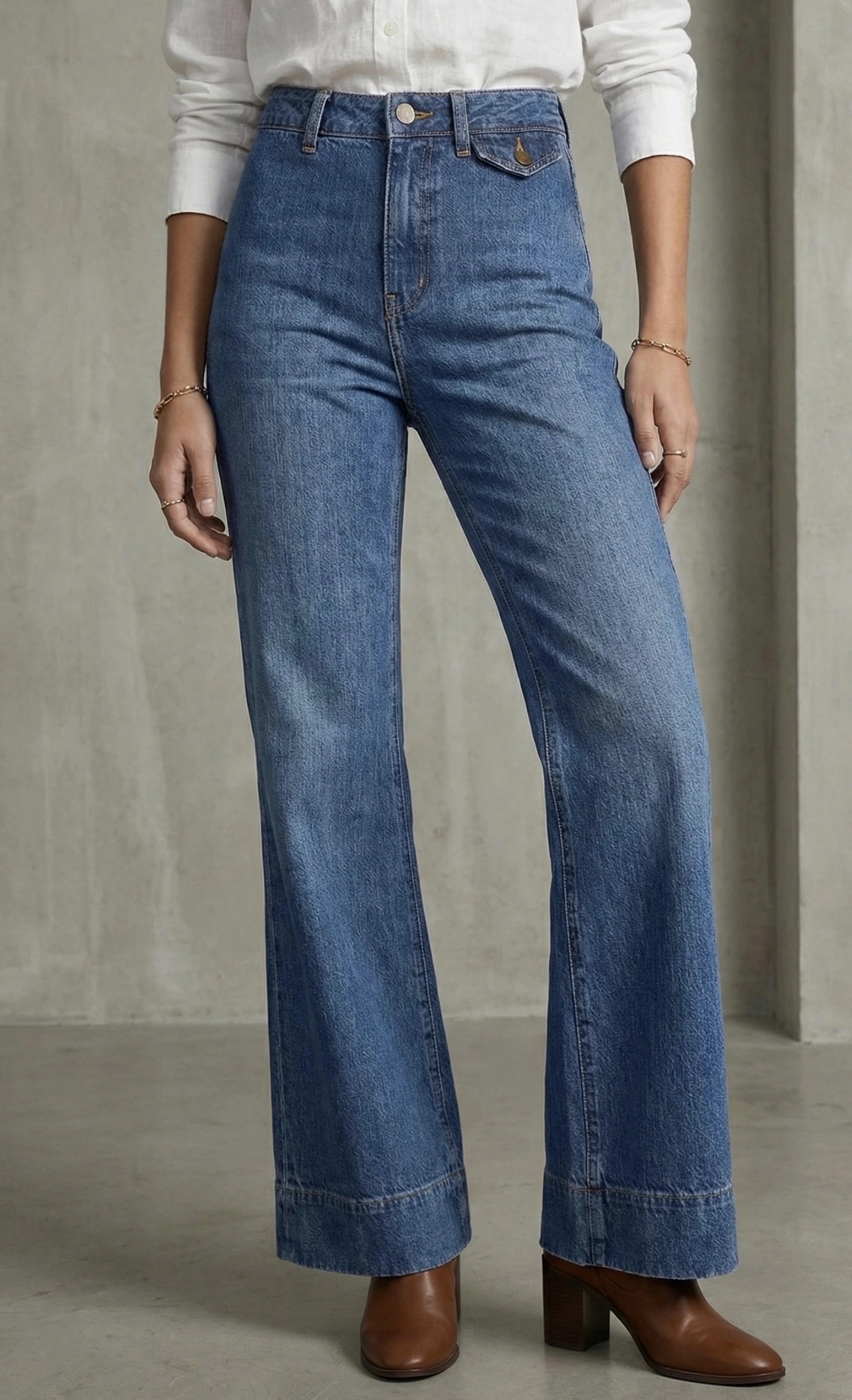 Jean Évasé Taille Haute Délavage Vintage
