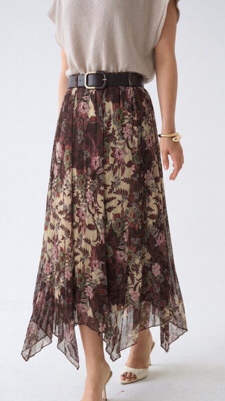 Jupe longue plissée à imprimé floral aquarelle