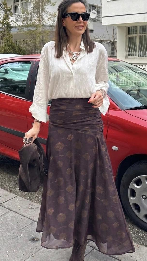 Jupe Midi Plissée à Motif Ourlet Asymétrique