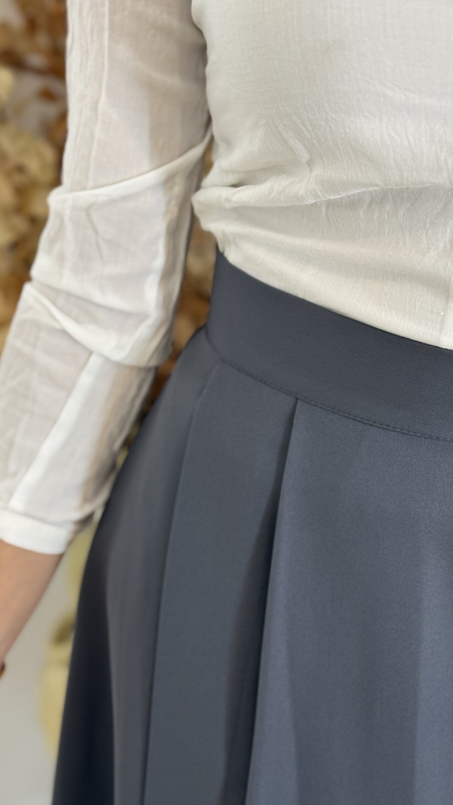 Coup de cœur pour cette jupe longue à la coupe impeccable. Sa couleur riche et ses plis structurés apportent ce petit côté « couture » qu’on adore.