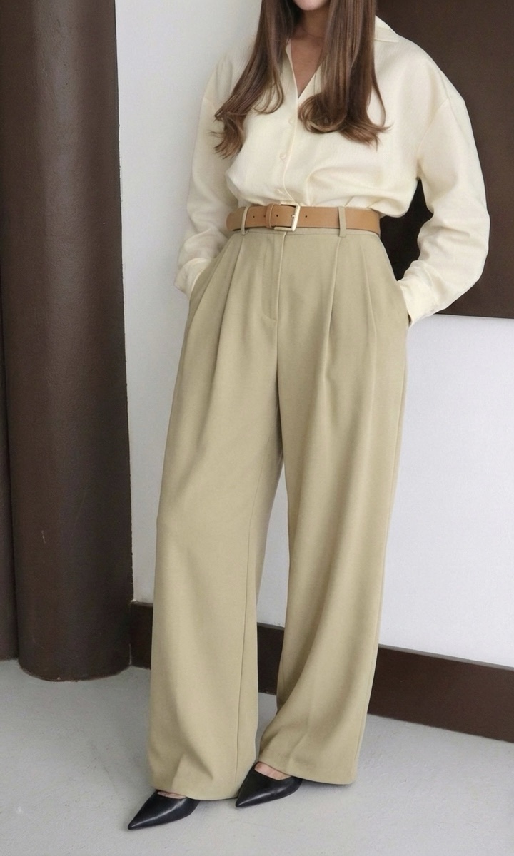 Pantalon Large à Pinces avec ceinture – Taille Haute