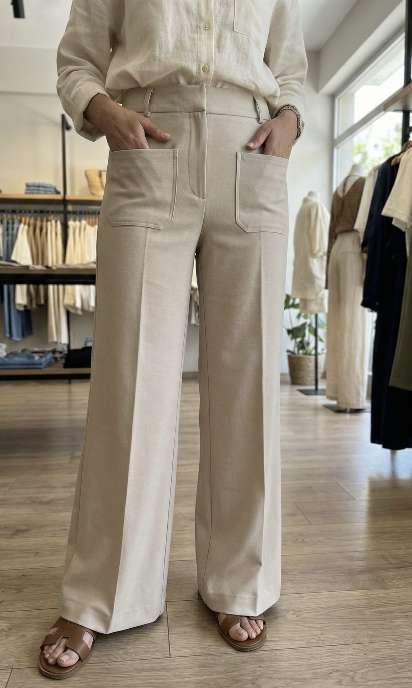 Pantalon Wide Leg Beige – Taille Haute & Poches Plaquées