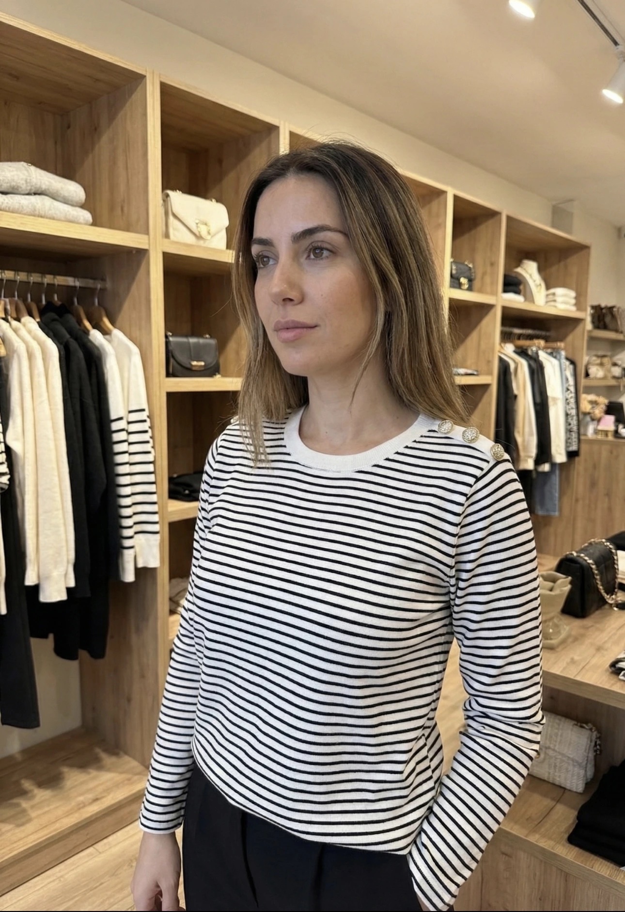 quantité de Pull Marinière Boutons Bijoux Dorés