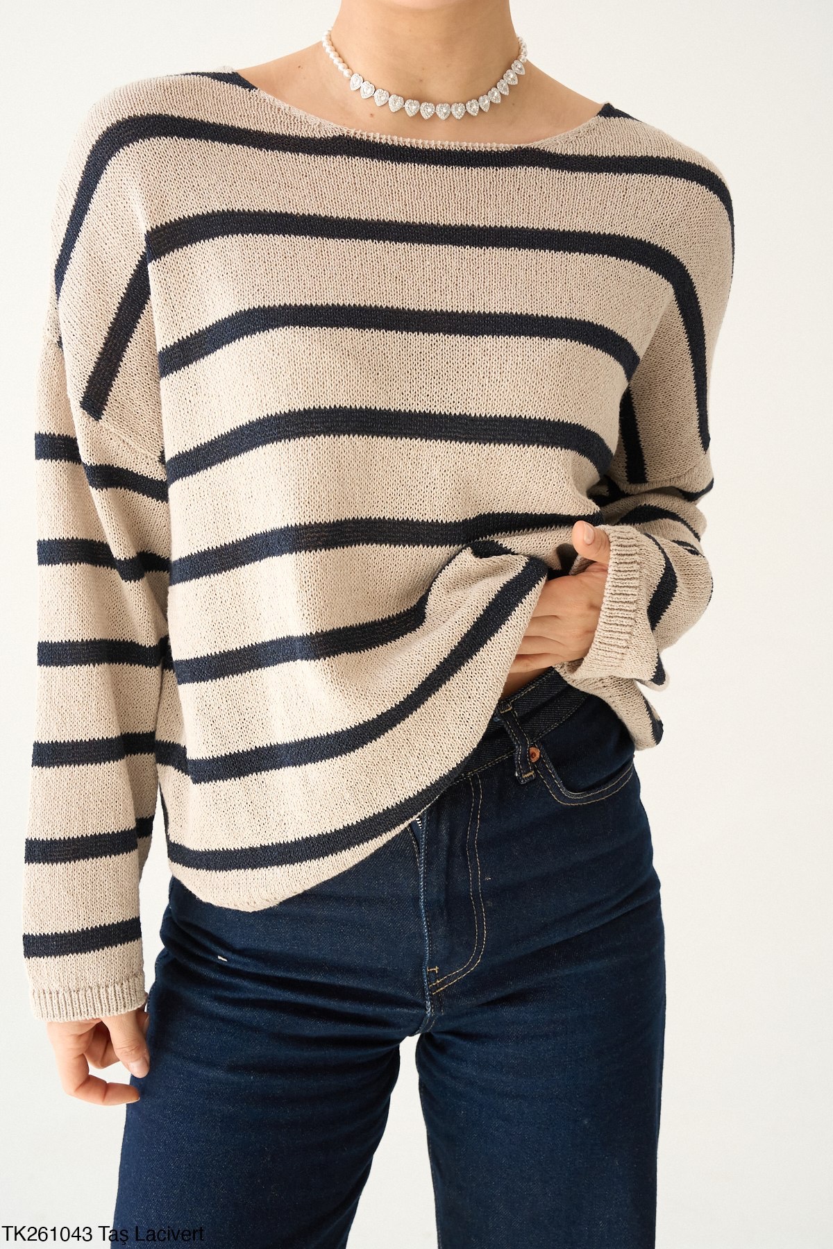 Réinventez le style nautique avec ce pull à rayures intemporel. Sa maille souple, d’un joli ton sable mouillé, est rythmée par des rayures horizontales bleu marine pour un look chic et naturel. On adore sa coupe décontractée aux épaules tombantes et son encolure bateau qui dégage délicatement le port de tête. Un essentiel de mi-saison, aussi à l’aise avec un jean brut qu’avec un pantalon blanc pour une allure « bord de mer » sophistiquée.