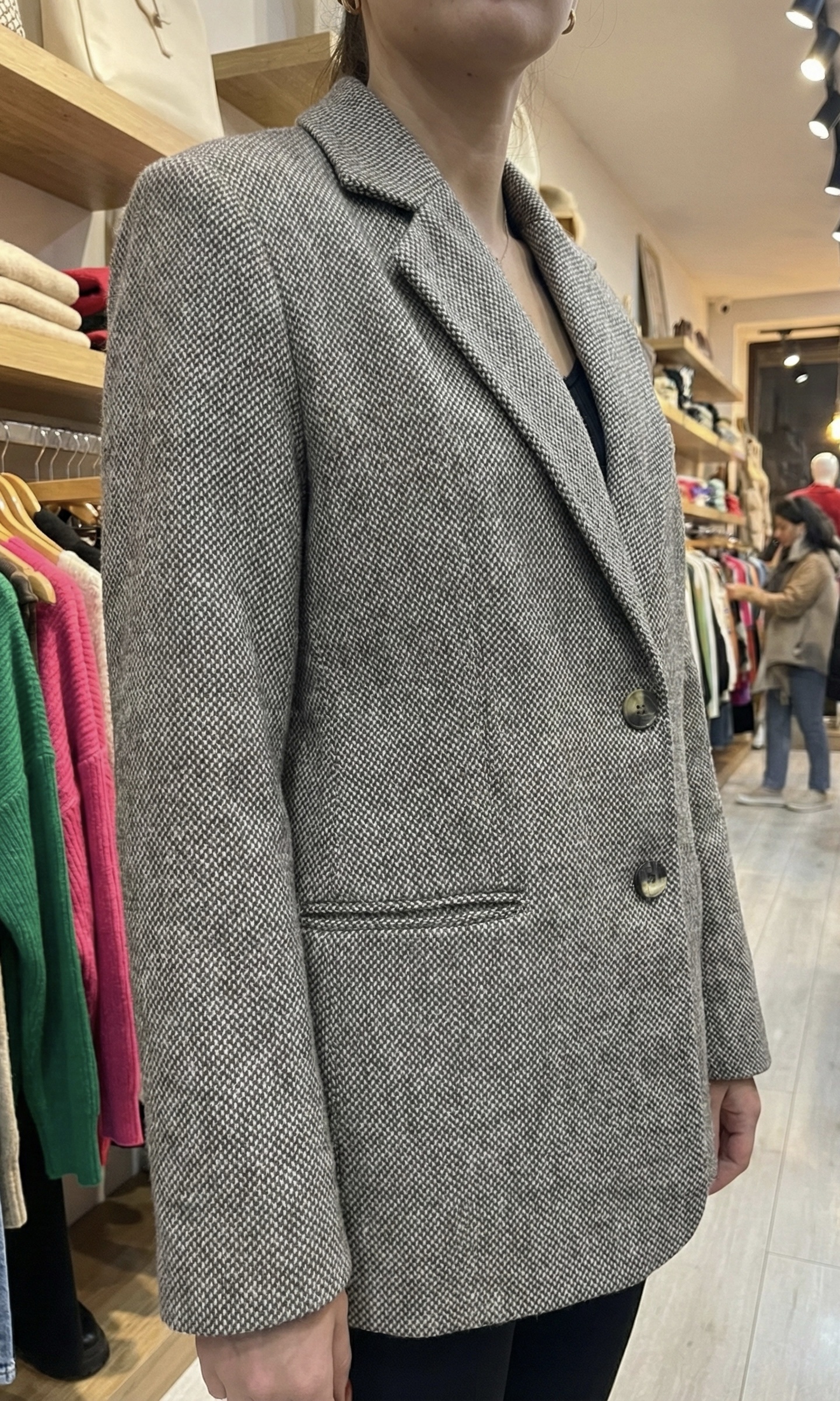 • Détails raffinés : On craque pour ses boutons façon écaille de tortue (tortoiseshell) qui contrastent subtilement avec le tissu et apportent une touche vintage authentique.